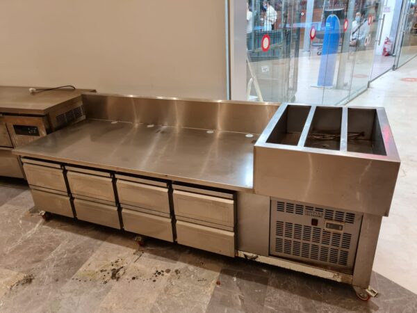 מקרר דלפקי עמדת עבודה עם בן מרי קר בנוי על עמדת העבודה 8 מגירות נמוך